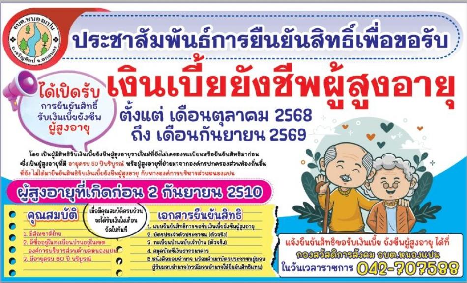 ประชาสัมพันธ์การยืนยันสิทธิ์รับเบี้ยยังชีพผู้สูงอายุ