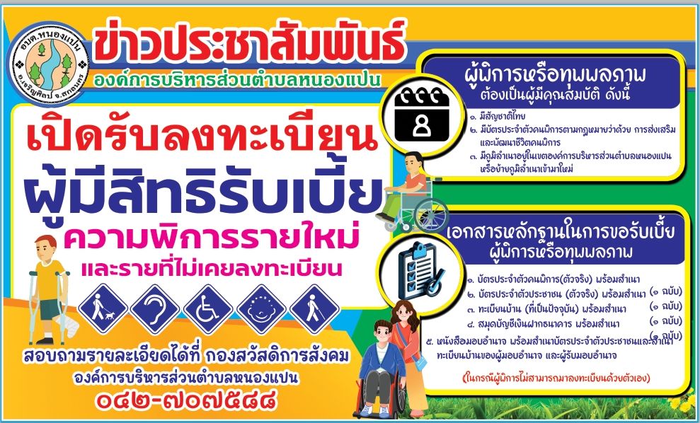 สอบถามรายละเอียดได้ที่ องค์การบริหารส่วนตำบลหนองแปน ณ กองสวัสดิการสังคม